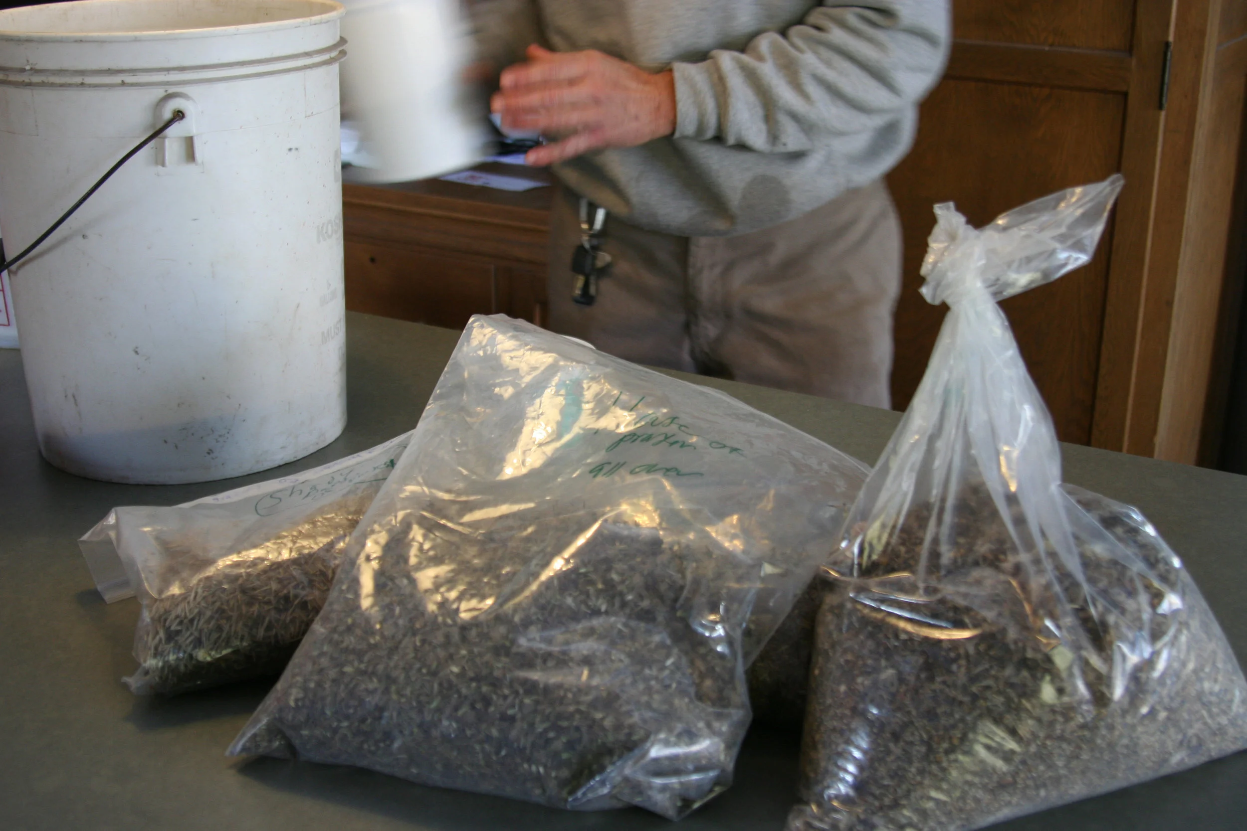 The ground cover layer is almost always made up of seed, because we blanket the whole plot with it. Design-wise it serves as a matrix, a base, or foundation upon which everything else rests. It is the background, as it were, upon which all else is highlighted. Functionally, it provides ground cover so that there are no empty spaces in which weeds might gain a foothold.
